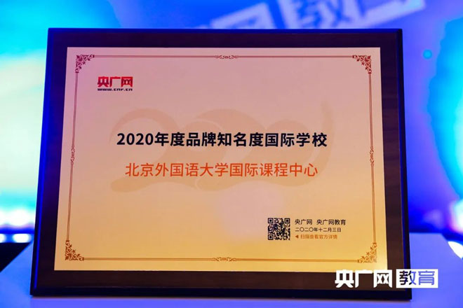12月3日,乘风破浪·聚教未来——2020年度央广网教育峰会在京举行。在此次峰会中北京外国语大学国际课程中心也凭借良好的业内口碑、深厚的教学实力,出色的升学成果,以及家长的支持与信赖荣获“2020年度品牌荣誉国际学校”称号。
