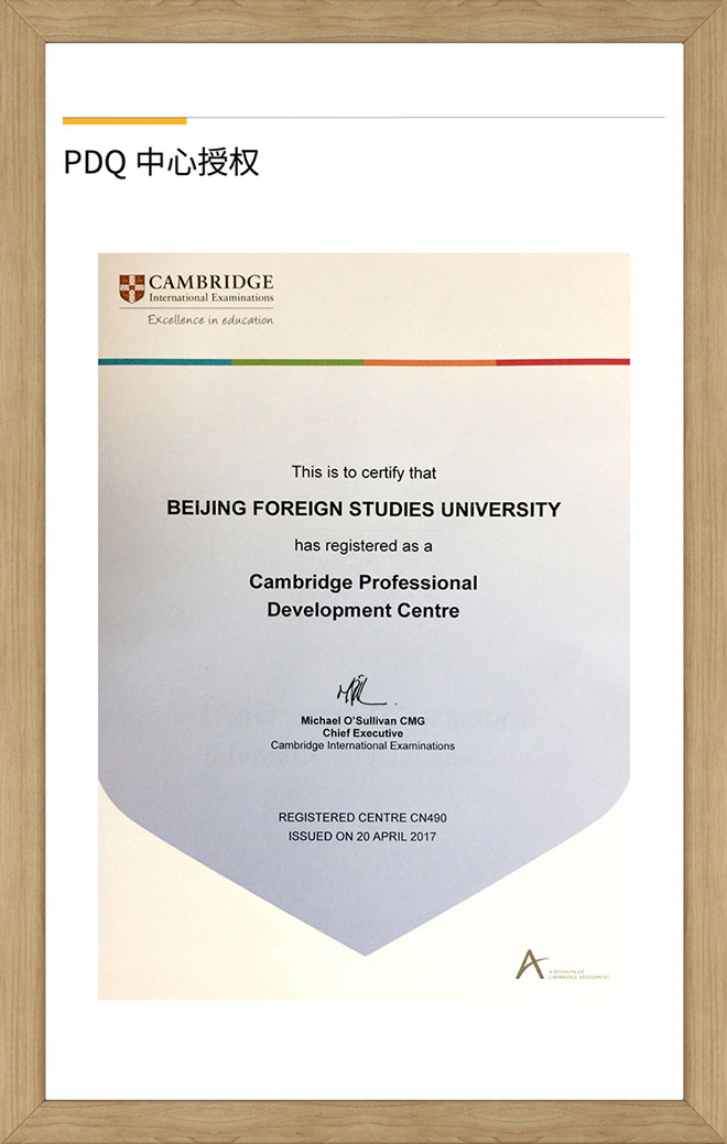 北京外国语大学国际课程中心是剑桥国际授权的教师发展认证(PDQ)中心,这意味着我校能够提供世界出类拔萃的国际课程教师培训和认证服务。剑桥国际教师职业发展中心(Cambridge Professional Development Centre,简称PDQ中心)是剑桥大学国际考评部研发,由伦敦大学学院教育研究院(UCL-IOE,该教育研究院连续三年在世界大学教育领域排名第一)论证和支持的在岗培训项目。目前,全球共有182个PDQ学习中心,分布于57个国家,北京现有6个PDQ中心。我校还自主研发了教师、考务人员、规划师、学生以及国际化学校认证体系,为学校师资力量提供强大的支持与保障。